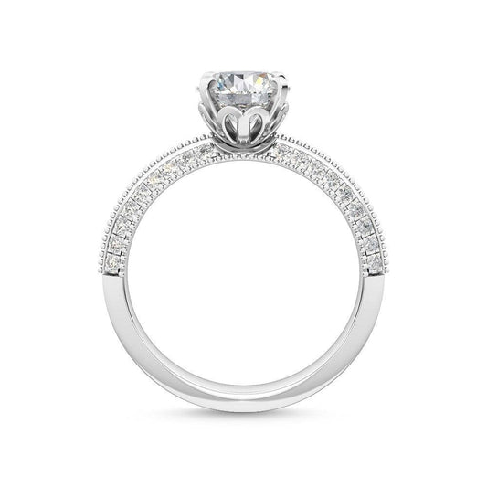 18k White Gold Round Brilliant Cut Lab Grown Diamond Vintage Engagement Ring