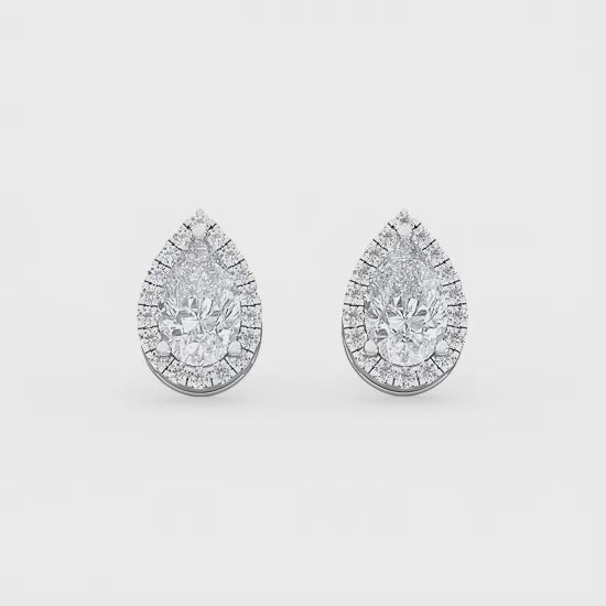 These 10k white gold halo diamond earrings are a beautiful finish to any special occasion. Crafted with a pear shaped halo design, these earrings feature sparkling diamonds for a shine that will make you stand out. Experience luxurious elegance with these timeless earrings.