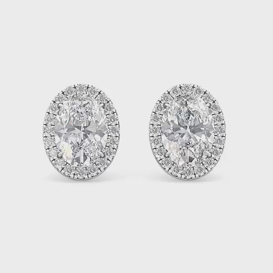 10k White Gold Oval Shaped Halo Diamond Earrings