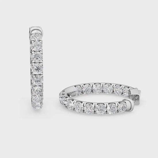 These exquisite 5ct white gold diamond hoop earrings are handcrafted in 18k white gold with lab-grown diamonds, making them a unique and environmentally friendly choice. Both luxurious and lightweight, they provide a sophisticated and captivating look.