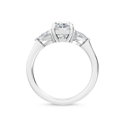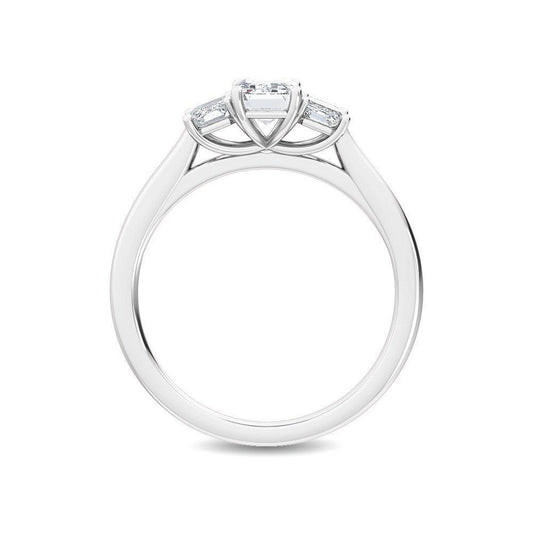 18K White Gold Emerald Cut Lab Grown Diamond Three Stone Trillogy Ring
