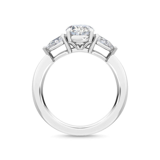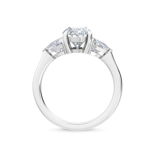 18K White Gold Pear Cut Lab Grown Diamond Three Stone Trillogy Ring