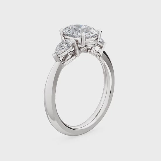 18K White Gold Oval Cut Lab Grown Diamond Three Stone Trillogy Ring