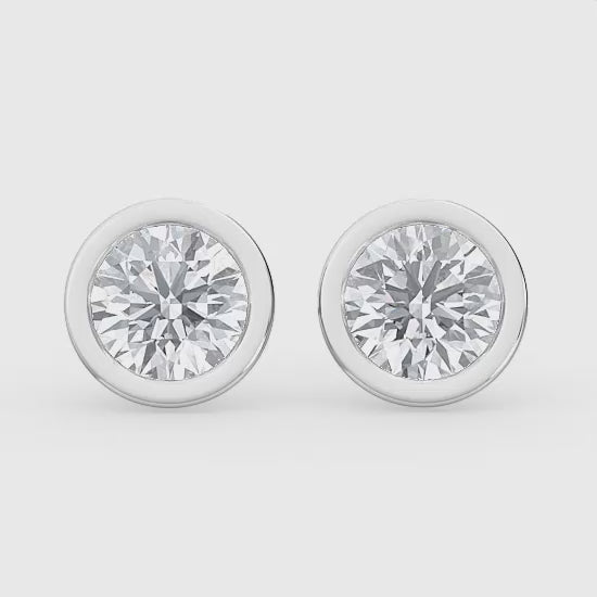 18K 2ctw Round Lab Grown Bezel Set Studs